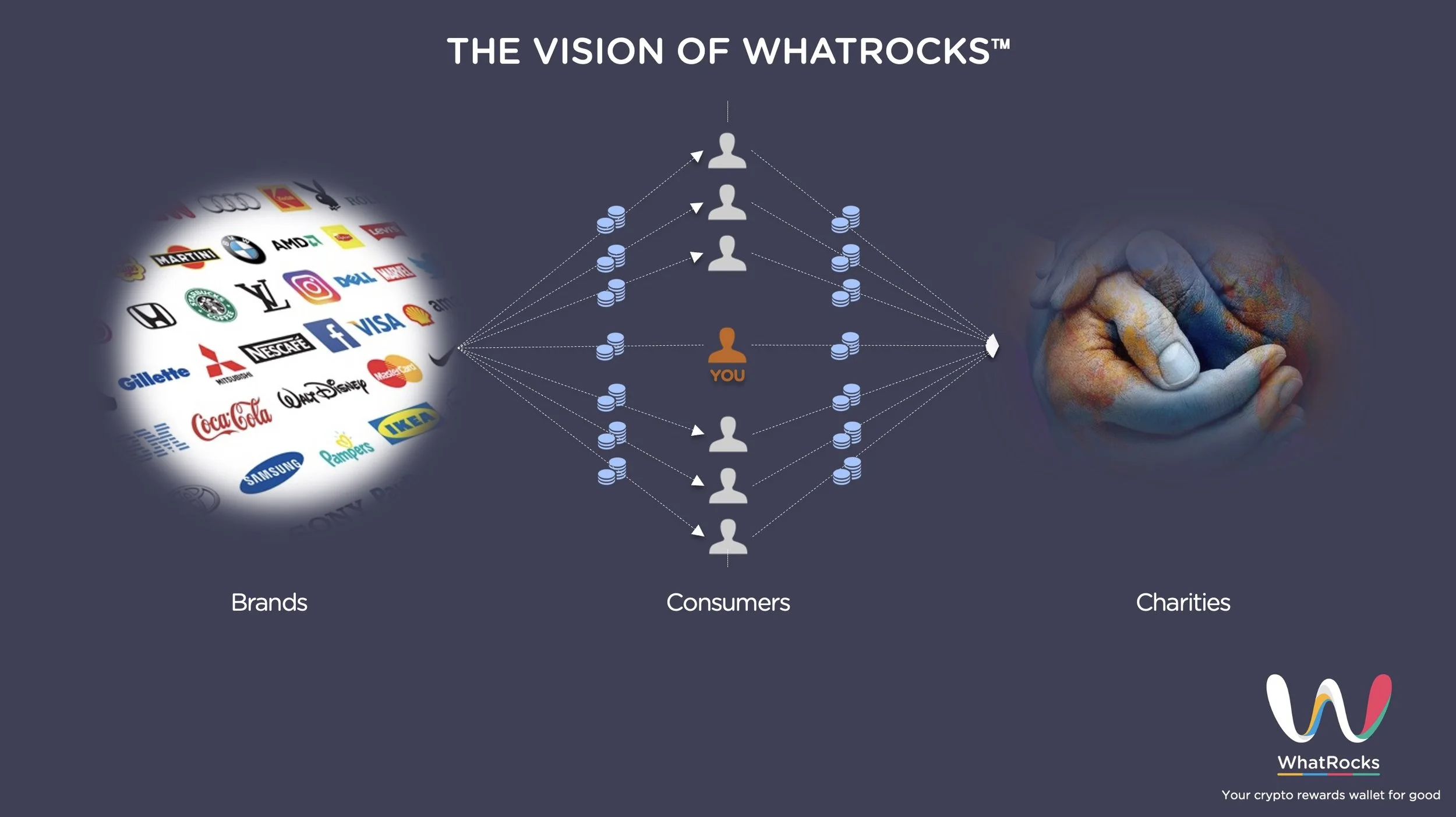 With WhatRocks, brands develop “engage-to-earn” strategies that reward consumers for their attention, their engagement, and their purchases with complimentary crypto for good for them to donate to their charities of choice.