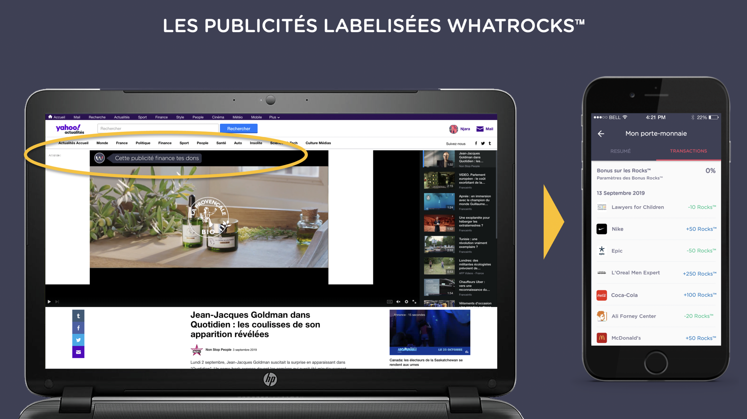 Les marques ajoutent le label WhatRocks™ à leurs publicités display et vidéo pour prendre l’engagement public de récompenser financièrement les internautes avec des crypto rewards appelées Rocks™ lorsqu’ils voient ou qu’ils cliquent sur leurs publicités.